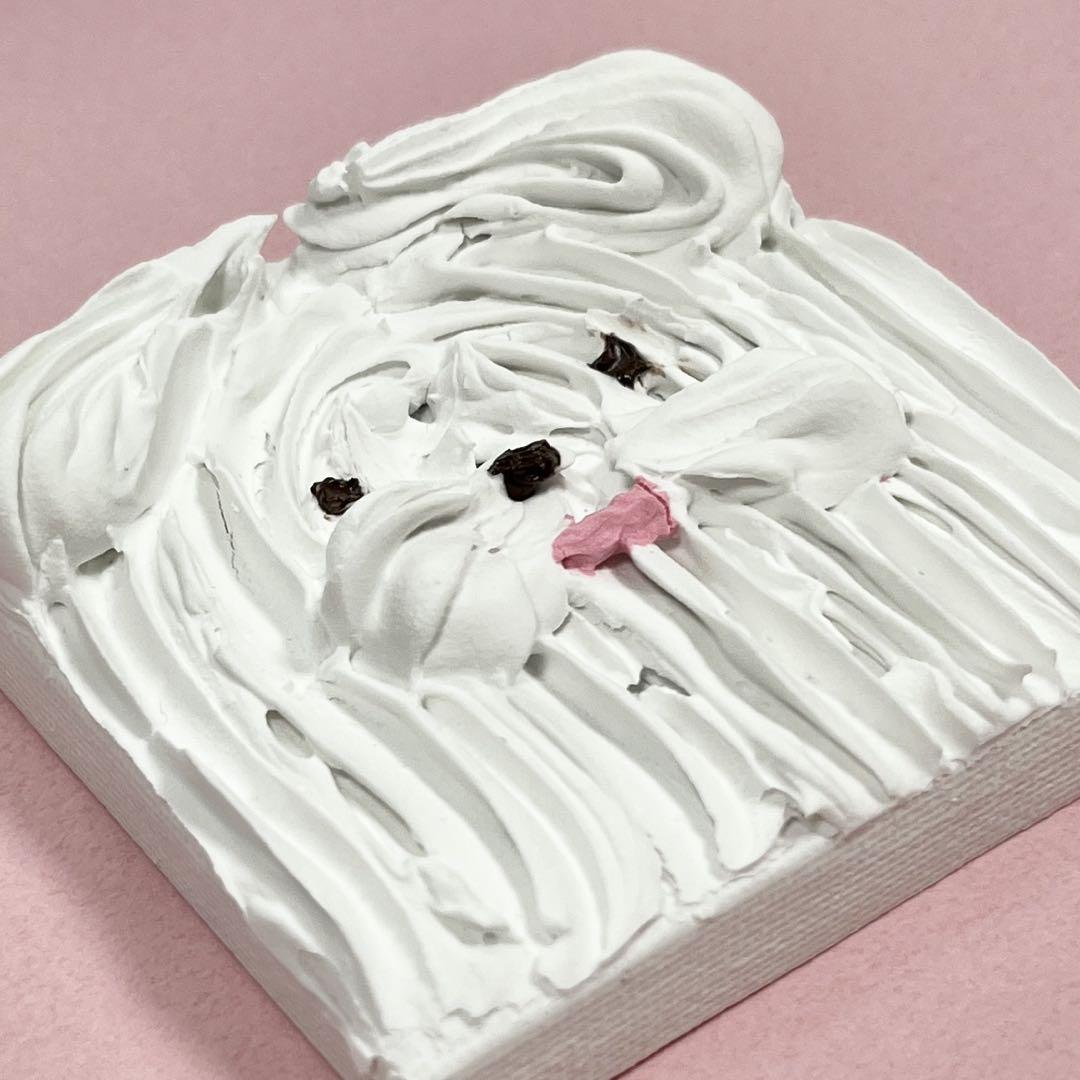 コモンドールのようなモップ犬をテクスチャーアートにしました。お写真の原画を販売しております。原画ですので、1点モノとなります。