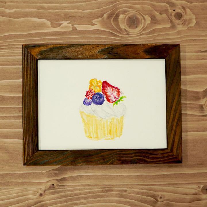 オイルパステル 原画「カップケーキ」(額縁は見本です)